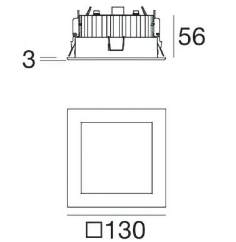 Downlights a singola emissione per applicazione indoor. La sorgente luminosa LED, di colore bianco naturale, con distribuzione luminosa General Lighting, è composta da 48 LED topled, con una CCT 4000 K ed un CRI 80; il flusso luminoso della sorgente èdi 1632 lm, con un'efficienza nominale di 125.5 lm/W.