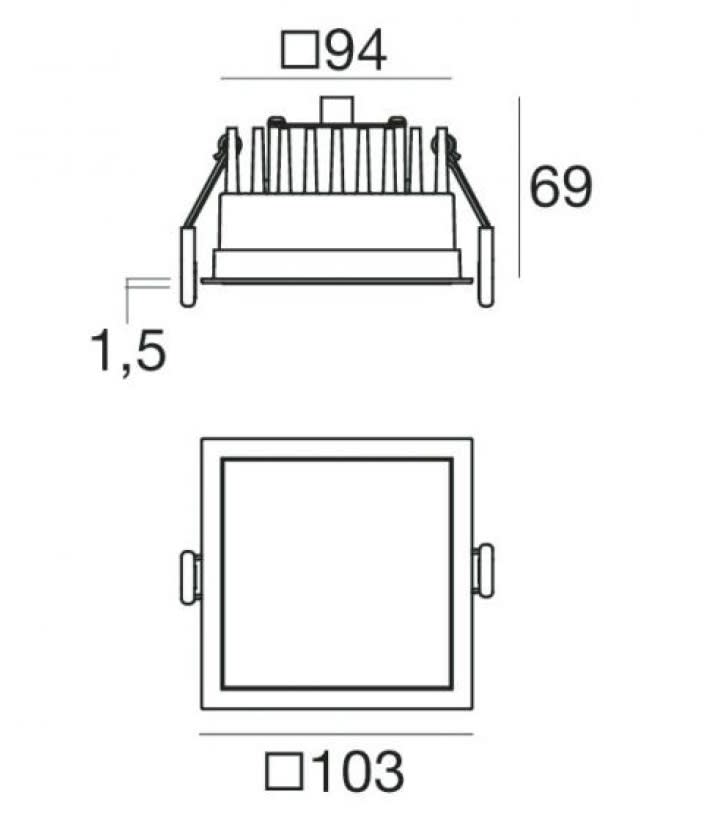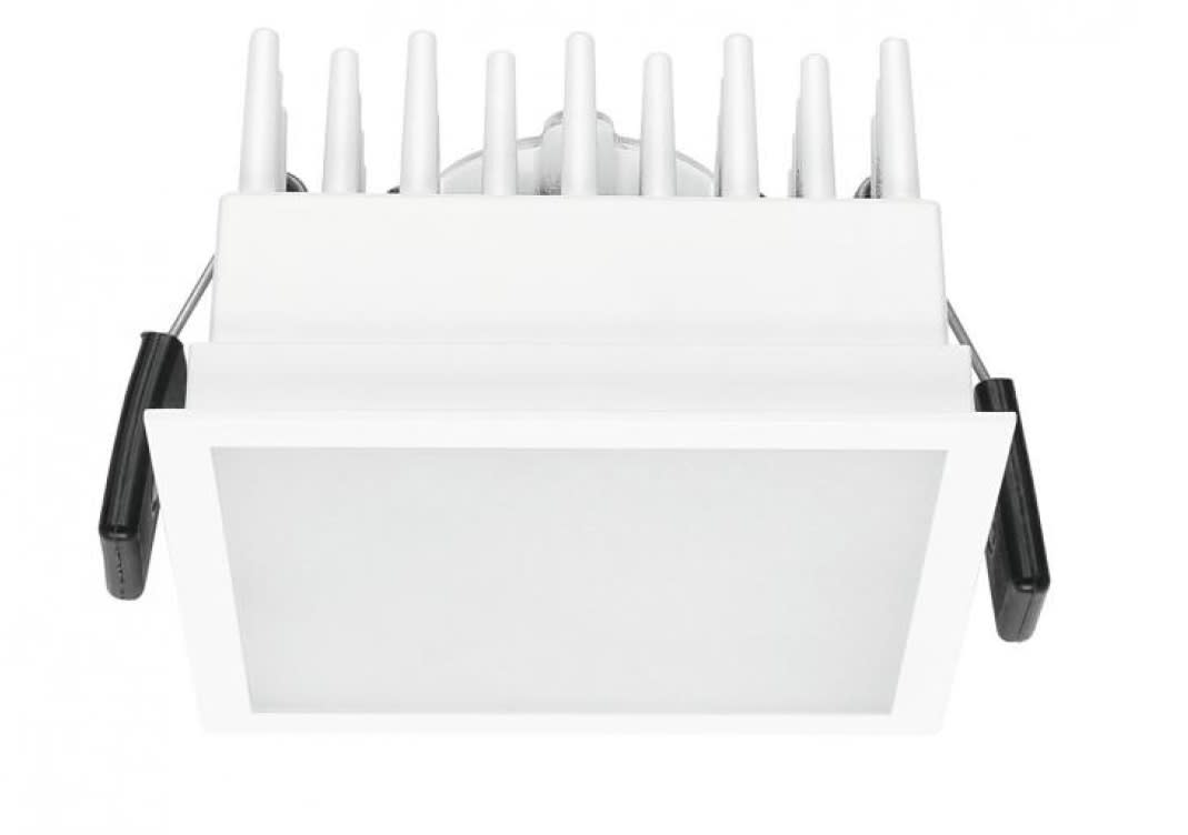 Incasso a soffitto a singola emissione per applicazione indoor. La sorgente luminosa LED, di colore bianco naturale, con distribuzione luminosa diffusa, è composta da 10 LED powerled, con una CCT 4000 K ed un CRI 80; il flusso luminoso della sorgente è di 1045 lm, con un'efficienza nominale di 104.5 lm/W. Il corpo dell'apparecchio, realizzato in alluminio, presenta una finitura di colore bianco ral 9003, ottenuta tramite verniciatura; il diffusore è prodotto in pmma. Il grado di protezione è IP44; il peso complessivo è di 0.364 kg. La potenza assorbita dall'apparecchio è di 10 W. Il cavo per l'alimentazione è incluso e presenta una lunghezza di 0.20 m. L'apparecchio presenta una classe di isolamento I ed è installabile a soffitto, con foro quadrato con misura 97 x 97 mm (nel cartongesso).