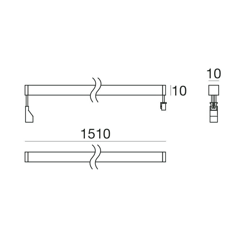 Elementi lineari a singola emissione per applicazione indoor. La sorgente luminosa LED, di colore bianco caldo, con distribuzione luminosa General Lighting, è composta da 270 LED topled, con una CCT 3000 K ed un CRI 95; il flusso luminoso della sorgente è di 1119 lm, con un'efficienza nominale di 62.2 lm/W. Il corpo dell'apparecchio, realizzato in policarbonato, presenta una finitura di colore bianco; il diffusore è prodotto in policarbonato. Il grado di protezione è IP40; il peso complessivo è di 0.075 kg. Il driverd’alimentazione non è fornito e deve essere ordinato separatamente. La potenza assorbita dall'apparecchio è di 18 W. Il cavo perl'alimentazione è incluso e presenta. L'apparecchio presenta una classe di isolamento III ed è installabile a parete o soffitto.