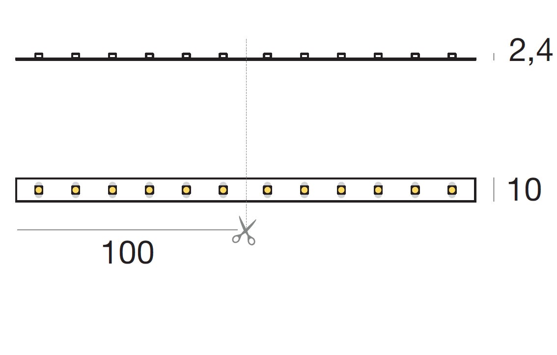 Led strip a singola emissione per applicazione indoor. La sorgente luminosa LED, di colore bianco caldo, con distribuzione luminosa Extra Wide Flood, presenta un'emissione, è composta da 300 LED stripled, con una CCT 3000 K ed un CRI 80; il flusso luminoso della sorgente è di 2735 lm, con un'efficienza nominale di 114.0 lm/W.