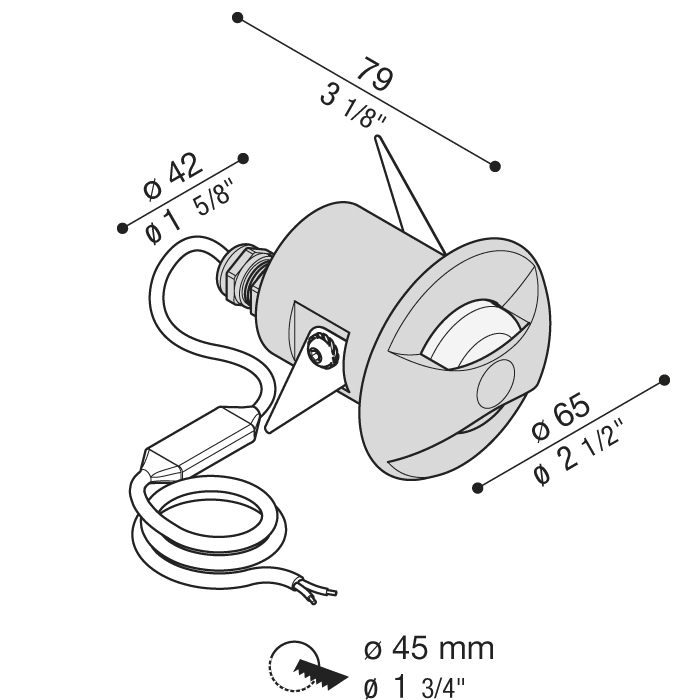 CNC50 TOP 2L. Adatto per installazioni a parete e controsoffittature in cartongesso, anche per uso esterno. Idoneo per incassi da terra ad uso calpestabile, fissaggio mediante armatura da incasso fornita a parte. Prodotto finalizzato all’impiego di sorgenti luminose a LED per luce di accento e segnalazione. Corpo e ghiere in acciaio AISI316L. Diffusore in vetro temprato. Guarnizioni in silicone. 1.5 m di cavo di alimentazione H05RN-F pre-cablato e bloccato tramite pressacavo in Ottone Nichelato. La molladi ritenuta si adatta sia per applicazioni che prevedono l'utilizzo di armatura da incasso che direttamente in controsoffittature in cartongesso. Dimmerazione disponibile. Bulloneria in acciaio inox A4 o AISI 316L. che protegge il faretto dalle infiltrazioni di acqua e umidità.Versione in tensione costante 12/24V: Tutti i cavi sono provvisti di una speciale guaina che protegge il faretto dalle infiltrazioni di acqua e umidità. Versione ghiera Top con 2 aperture da 110°. Temperatura massima rilevata sul vetro 65°C. Tipo lampada: 1 LED - 24V 650lm-5% - 6,5W - 2700K real output lm 453. Versione a led senza alimentatore.