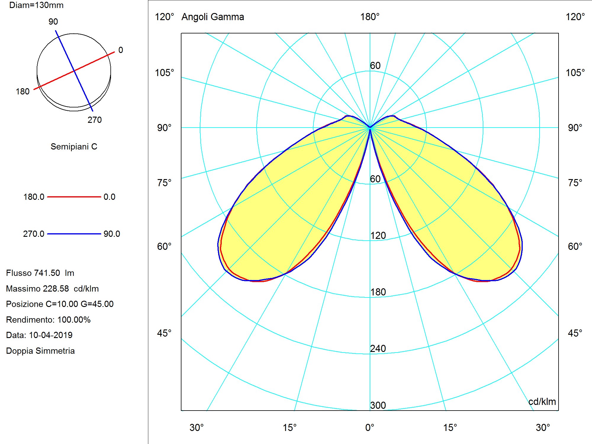 Flusso luminoso calcolato secondo la norma IEC 62722-2-1: