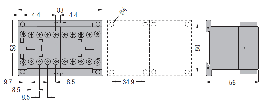 TELEINVERTITORE ASSEMBLATO, BOBINA IN AC, CON INTERBLOCCO MECCANICO INCORPORATO E CONNESSIONI DI POTENZA, 9A AC3 IN AC, 4KW. TENSIONE BOBINA 24VAC 50/60HZ