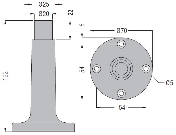 Base di fissaggio su supporto orizzontale plastico, colore nero con prolunga 100mm