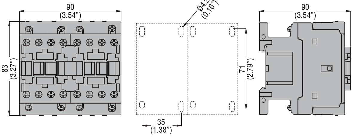 TELEINVERTITORE ASSEMBLATO, BOBINA IN AC, CON INTERBLOCCO MECCANICO ESTERNO E CONNESSIONI RIGIDE, 18A AC3 IN AC, 7,5KW. TENSIONE BOBINA 24VAC 50/60HZ.