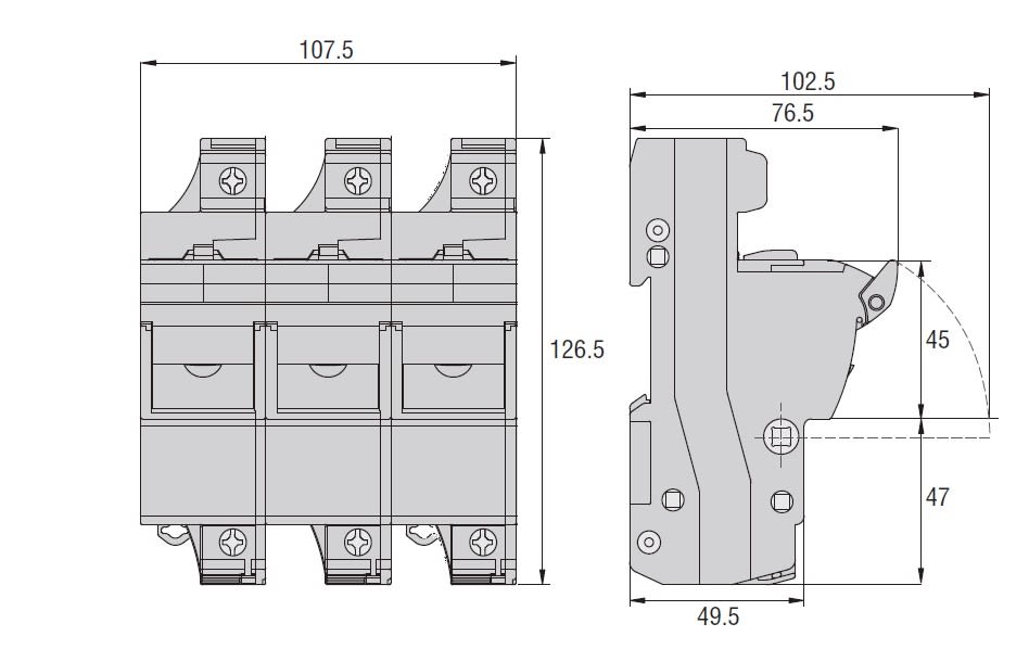 Tensione nominale 690VAC, corrente nominale 125A, categoria di utilizzo AC-21B 690V, adatti per fusibili 22x58 gG o aM, sezione massima 35mm2 cavi flessibili, collegabile 50mm2 cavi rigidi. Omologazioni ottenute UR, CSA, cURus cURus. Conformità IEC/EN60947-1, IEC/EN 60947-3. Conformità alla direttiva RoHS, UL512, CSA C22.2 n°39