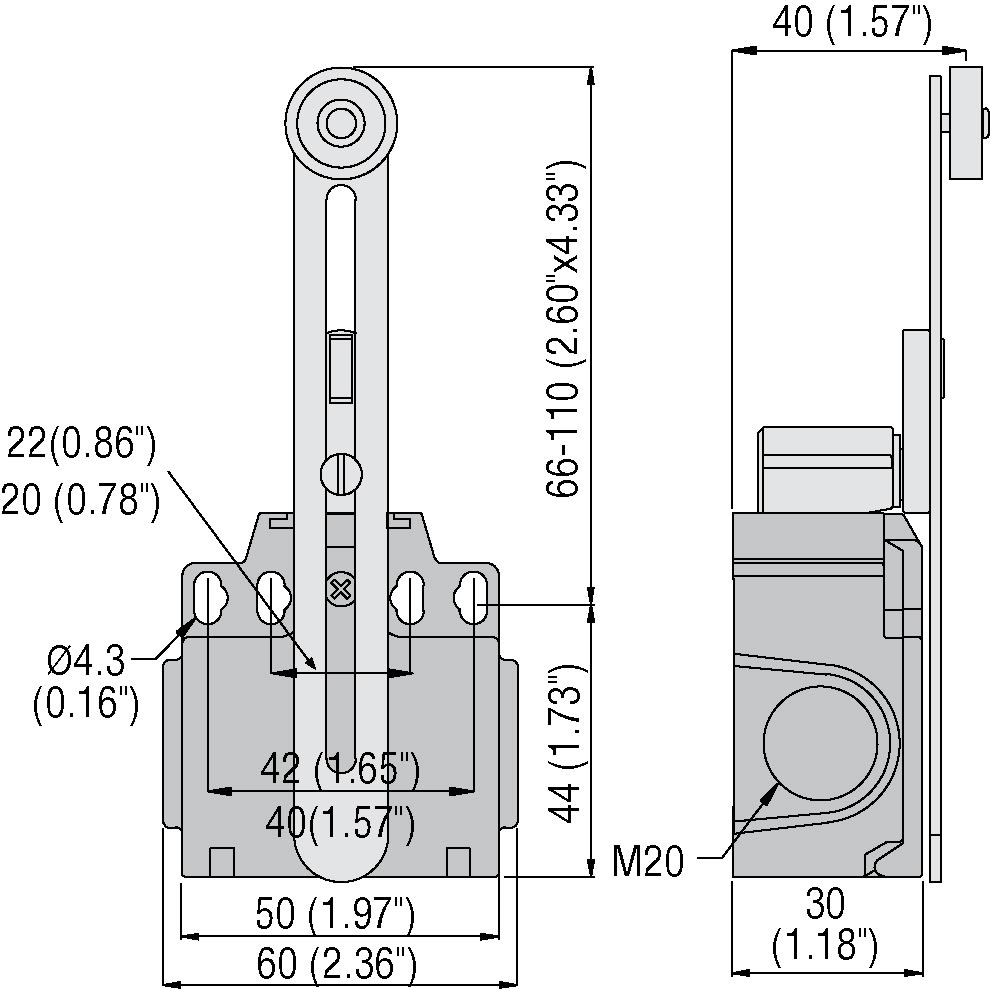 Tipo di elemento di controllo - Leva con rotella regolabile