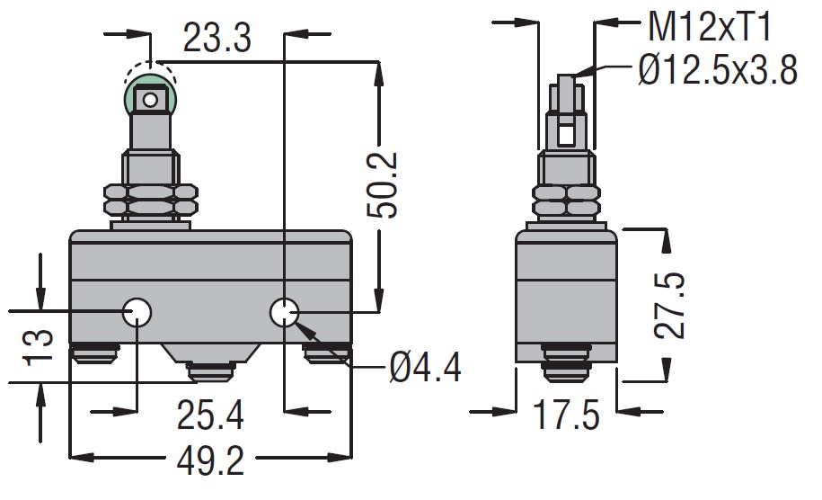 Tipo di elemento di controllo - Pistoncino con rotella