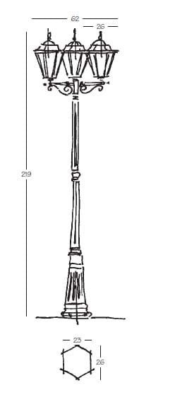 NOBILE ILLUMINAZIONE - NOB2002/11/NE/SAT LAMPIONE TRE LUCI ESAGONALE MEDIA NE SAT - 2002/11/NE/SAT