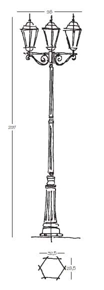 NOBILE ILLUMINAZIONE - NOB2051/11/02/NE/S LAMPIONE H297 3 LUCI ESAGON.NE DIFF.SAT - 2051/11/02/NE/S