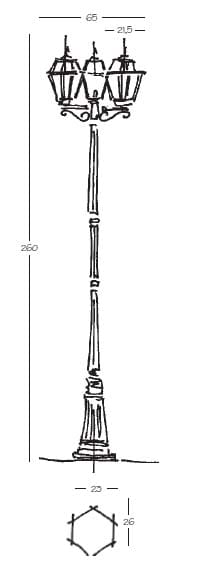 NOBILE ILLUMINAZIONE - NOB2058/11/X/NE LAMPIONE 3 LUCI 8 VETRI C/PROLUNGA NE - 2058/11/X/NE