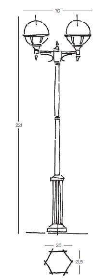 ROTUND - Lampione 2 luci in pressofusione di alluminio. Diffusore: Polimetacrilato trasparente chiara. Gli articoli di questa serie vengono forniti nella versione di base così come presentati sul catalogo: NA con sfera trasparente chiara. Per altre combinazioni di colore fare esplicita richiesta. Colori struttura: Antracite. Lampada ad incandescenza 2x 100W E27 / Fluorescente compatta 2x 23W E27.