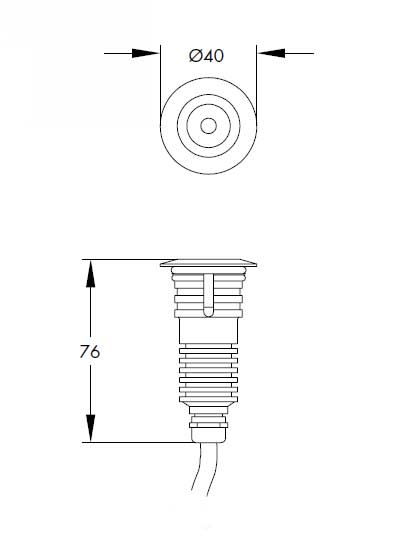 Incasso tondo per installazione parete, soffitto o calpestabile.Led di potenza XP-E CREE. Anello in acciaio AISI 316L.Corpo in alluminio anodizzato nero. Cavo in neoprene H05RN-F 2X0,75 di 150cm.Lente in metacrilato. Controcassa in alluminio inclusa.