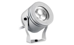 Proiettore a LED con staffa orientabile per installazione a pavimento, parete o soffitto. Apparecchio da sommersione fino a 5m di profondità. LED XP-E CREE. Corpo e staffa in alluminio. Viti acciaio inox. Cavo in neoprene H05RN-F 2×0,75 di 3m. Dimmerabile con Dimmer varialuce cod. 186155/Dimmer. Il collegamento di più LED.