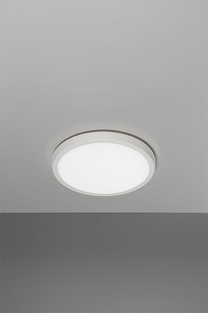 PLIR IP65 - Plafoniera LED tonda IP65 per installazione a plafone e a parete. LED 2835. Life time 30.000h (rendimento 70%). Corpo in policarbonato bianco e diffusore opale. 3 Anelli intercambiabili da ordinare separatamente: Bianco, Nero, Grigio. Alimentatore 220 - 240V 50/60Hz incluso. LED 24W 2412 lm 3000K CRI 80 - 110°.