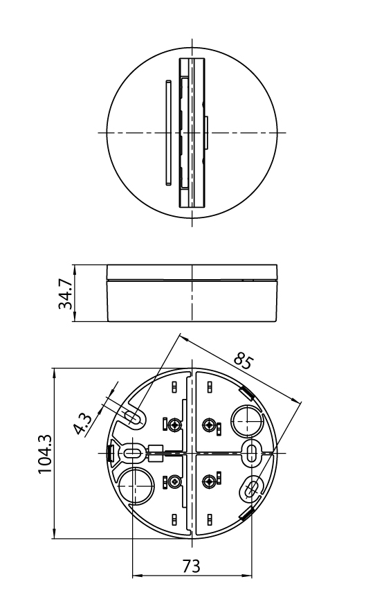 Basetta in policarbonato a plafone DALI + trifase, per fissaggio proiettori senza utilizzo del binario. Colore: Nero. Carico elettrico: 16A-440V 1A-50V. Per installazione a controsoffitto aggiungere cod.S52/.
