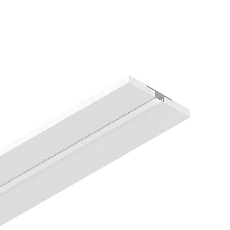 L-16 EVO profilo in cartongesso - 2m. Tagliabile a misura in opera, di spessore 12,5mm. Dissipatore in alluminio e diffusore opale inclusi; strip LED ed alimentatore elettronico (da remotizzare in apposito vano ispezionabile) da ordinare a parte. Strip LED consigliate per luminanza uniforme - 22W/m e 19,2W/m (240 LED/m). Per installazione ad incasso in cartongesso a parete o a soffitto. Corpo in cartongesso da lastra standard spessore 12,5 mm, 100% naturale, ad integrazione totale. Profilo dissipante inlega di alluminio anodizzata naturale. Schermo di protezione in PMMA opale. Tutte le parti sono tagliabili a misura in opera.