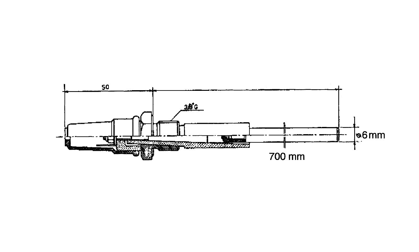 Elettrodo a una sonda, l=700 mm, diam. 6 mm, in AISI 304, attacco filettato 3/8 gas
