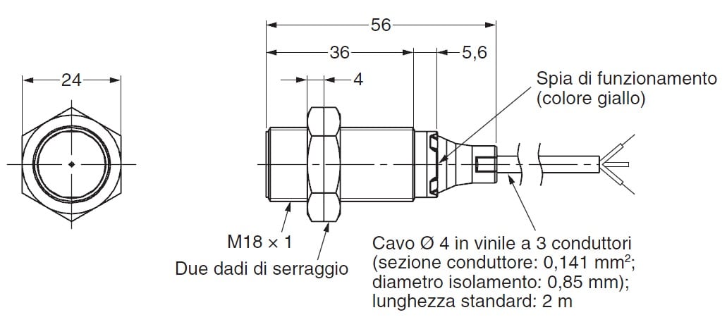 Tipo di installazione meccanica del sensore - A filo