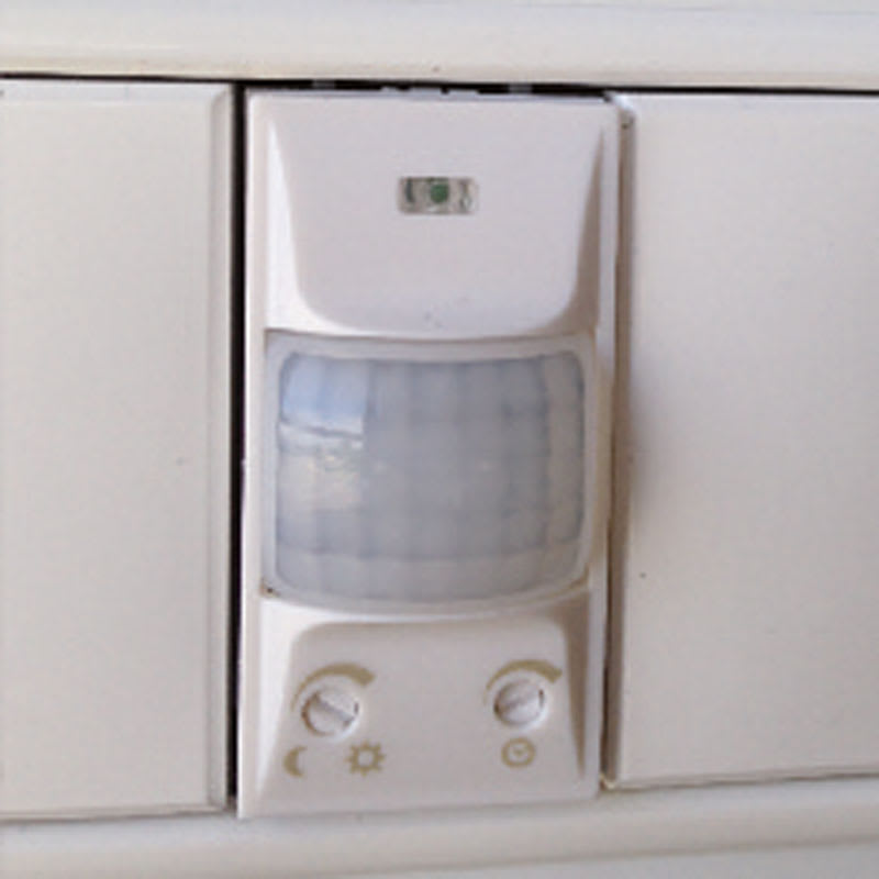 MINIMAT - Rivelatore di presenza tipo PIR da incasso un modulo serie civile, compatibile con le principali serie con un sistema di adattatori intercambiabili + tre frontalini colore Bianco, Antracite e Alluminio inclusi nella confezione. Regolazione della luminosità e ritardo allo spegnimento. Tecnologia “Zero crossing”.