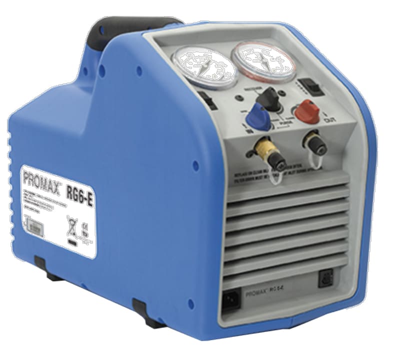 Rg6-E Stazione di recupero da 1Hp. Alimentazione 230 V AC. Assorbimento 6 A - 750 W. Compressore a secco, doppio pistone 1 HP. Tassi di recupero: vapore 0,25 Kg/min., liquido 3,50 Kg/mi. Pressostati di alta e bassa pressioneProtezione compressore anomalie e alta pressione 38,5 bar. Temperatura ambiente da 0°C a 40°C. Peso 14,5 KgDimensioni: 432 x 305 x 228. Le stazioni vengono fornite con filtro d’ingresso, raccordo di ingresso con rubinetto, raccordo di uscita con rubinetto, cavo di alimentazione