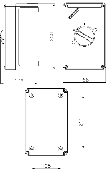Interruttori sezionatori da parete di emergenza con manopola rossa e targhetta gialla in contenitore isolante IP65. Completo di calotta coprimorsetti, manopola lucchettabile.