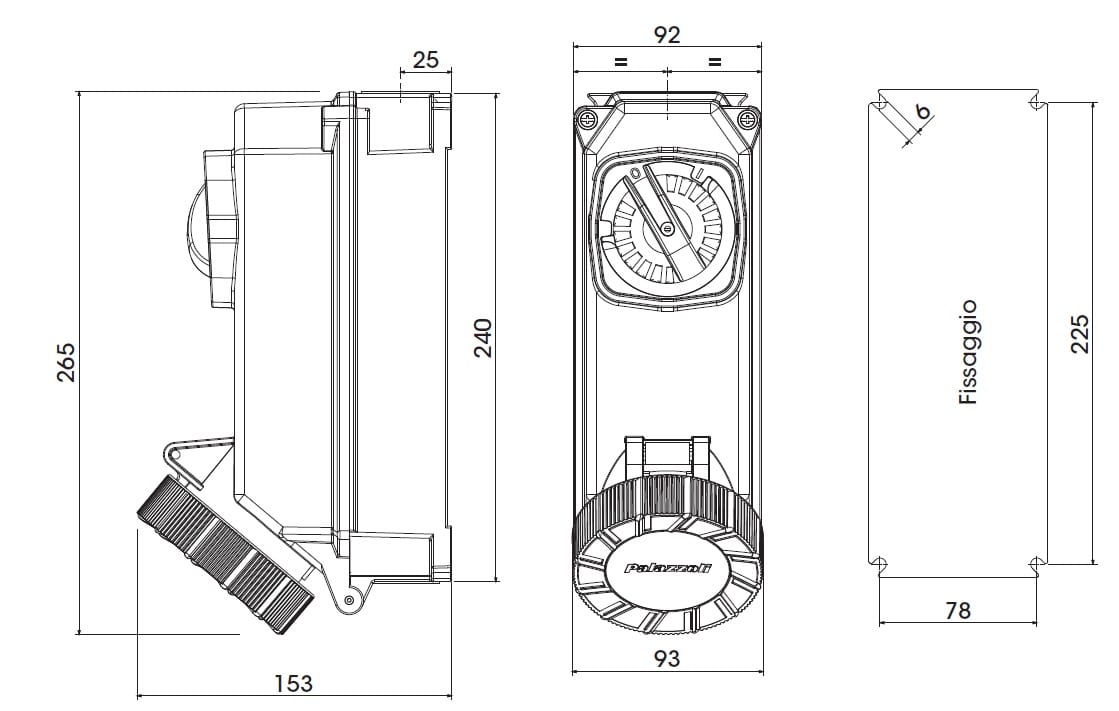 TAIS PRESA FISSA INTERBLOCCATA IN TERMOINDURENTE 3P+T 32A 200-250V 50- 60HZ 9H FUSIBILI E16 IP67 >IK10