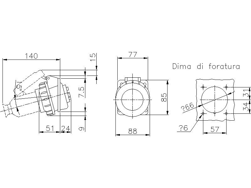 Presa da incasso inclinata stagna ad alte prestazioni bassa tensione. Guarnizioni in elastomero anti-invecchiante. Alveoli arrotondati ad inserzione agevolata. Adatta per impieghi frequenti in ambienti con presenza di urti, vibrazioni, agenti chimici, liquidi e polveri. Dimensioni flangia: 70x76.