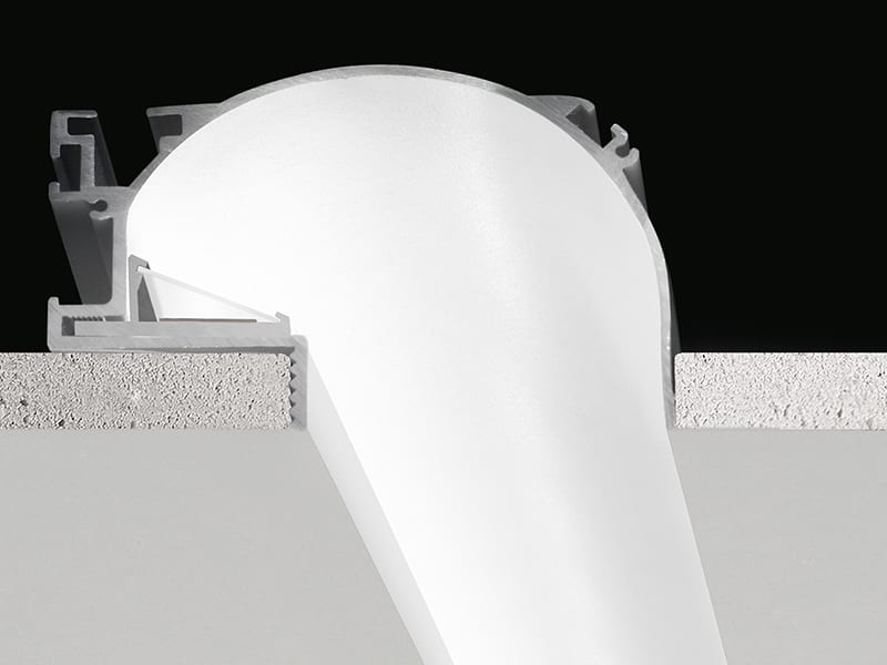 Profilo componibile per installazione incassata a soffitto o parete in ambienti interni, con emissione indiretta. Struttura a scomparsa per l'incasso in cartongesso, in alluminio estruso con verniciatura a polvere in colore bianco RAL 9003.Dissipatore in alluminio estruso. Schermo diffusore in policarbonato estruso con finitura opalina. Moduli luminosi e alimentatore da ordinare separatamente. Accessori di fissaggio, giunzione e chiusura da ordinare separatamente. Potenza assorbita dal sistema max 35W/m. Sorgente luminosa LED. Distribuzione luminosa fascio diffuso. Alimentazione 24V DC. Driver remoto non incluso. Peso 2,6350Kg. Grado di protezione IP20. 1920 mm