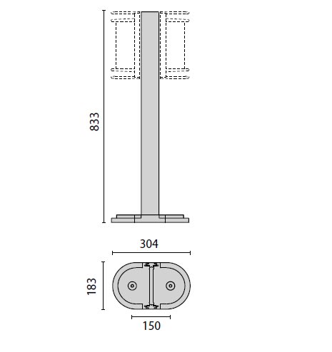 Palo 27 H800 costituito da: Palo in alluminio estruso verniciato predisposto per alloggiare uno o due apparecchi. Base di fissaggio a terra in alluminio pressofuso verniciato. Scatola di derivazione in alluminio pressofuso con morsetto a 4 poli 4 mm2 predisposta per collegamento in cascata. Colore: Antracite.