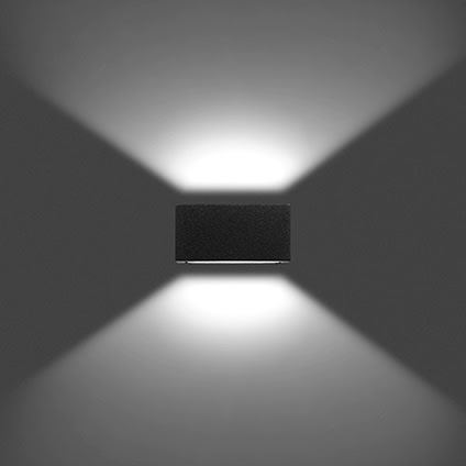 Apparecchio da parete per interni ed esterni costituito da: Corpo in pressofusione di alluminio verniciato. Diffusore in vetro verniciato internamente per creare una luce omogenea e diffusa. Riflettore in alluminio purissimo satinato (Al 99.98). Guarnizione in silicone. Processo di verniciatura in 13 differenti passaggi in polveri di poliestere ad alta resistenza contro raggi UV ed agenti atmosferici. Attacco: LED. Watt: N. 2 LED - 23 W. Colore: GRIGIO METALLIZZ. OPACO. Classe isolamento: I. KELVIN: 3000. IK: IK07 2J xx5. COSf = 0,9. Ottica: OTTICA ASIMMETRICA MEDIA. Flusso nominale: 2276 lm. Flusso effettivo: 1211 lm. Lifetime: 50000 h. L: 80.