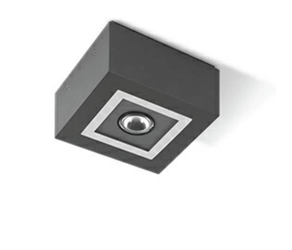 Apparecchio LED da parete e soffitto per interni ed esterni, costituito da: Corpo in alluminio pressofuso verniciato in polvere poliestere. Processo di verniciatura in 13 differenti passaggi in polveri di poliestere ad alta resistenza contro raggi UV ed agenti atmosferici. Diffusore in vetro piano extrachiaro temperato, serigrafato internamente. Ottica circolare intensiva. Guarnizione in silicone Guarnizione in silicone. Colore / RAL: AN-96 / Antracite metallizzato / Goffrato. Lampada: LED 10W 1120Lm 4000K.