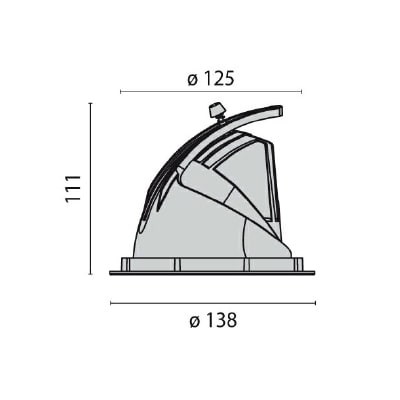 EB433 LED FLOOD REFLECTOR - Proiettore LED da incasso per interni, composto da: Corpo del faretto e anello in alluminio pressofuso, verniciato a polveri. Riflettore orientabile orizzontalmente verso l‘interno e l‘esterno grazie al particolare meccanismo cardanico. Orientabile a 60° (-15 a 45°), rotazione su 355°. Riflettore in alluminio purissimo con sfaccettature sferiche ad alta brillantezza per il massimo rendimento della lampada ed una resa cromatica neutra. Riflettore in versione flood. Tolleranza cromatica (MacAdam) = 3 SDCM. Il montaggio a soffitto non richiede l'uso di utensili. Completo di alimentatore elettronico. Fissaggio a soffitto mediante molle. Completo di vetro di protezione. LED 20W 2890lm 4000K CRI 80 - 2 x 23°. Colore: Bianco RAL9016 / Goffrato.