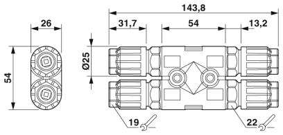 Innovativo e rapido: connessione rapida QUICKON per un risparmio di tempo fino all'80 % durante la connessione in loco. Pratico: confezionamento semplice e rapido senza utensili speciali. Estremamente robusto: custodia con gradi di protezione IP68/IP69K e IK07 per un ampio range di impiego. Connessione sicura grazie alla polarizzazione contro le inserzioni errate e la protezione antinfortunistica a norma DIN EN 0105. Flessibile e compatto: grazie al cablaggio interno delle connessioni, i distributori a He a T possono essere utilizzati per la diramazione di linee principali oppure come distributori a stella.