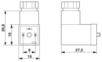 Connettore per valvole, 3-poli, Connettore per valvole C (8 mm), con 1 LED, collegato con Varistore, Connessione a vite, connessione a vite per cavo M12, diametro esterno cavo 4 mm ... 6 mm