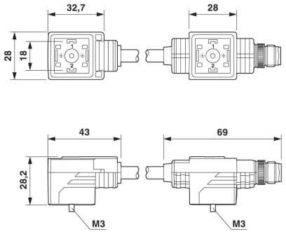 Forma del connettore di alimentazione, lato campo (Sensore / Attuatore) - Angolato