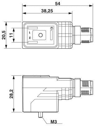 Connettore per valvole, 3-poli, Maschio angolato M12, codifica A, su Connettore per valvole BI (11 mm), con 1 LED, collegato con Diodo Z