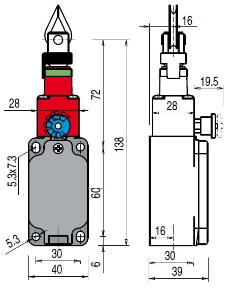 Questo interruttore di sicurezza viene installato su macchine o nastri trasportatori, rende possibile l'arresto di emergenza della macchina da qualsiasi punto di intervento manuale della fune.Dotato di funzione di autocontrollo, verifica costantemente ilsuo correntto funzionamento segnalando attraverso l'apertura dei contatti, un'eventuale allentamento o rottura della fune. L'interruttore mantiene i contatti aperti dopo l'azionamento anche se la fune viene rilasciata, fino al ripristino del reset. Custodia tipo FP in tecnopolimero rinforzato in fibra di vetro autoestinguente e antiurto a doppio isolamento.. Parametri di sicurezza fino a SIL 3/ PLe.