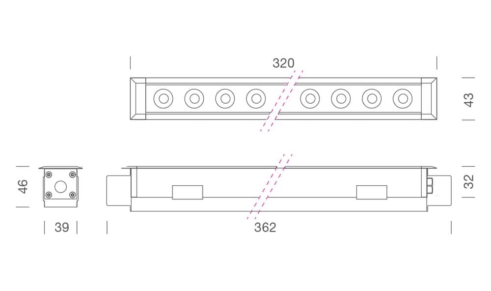 MINI CORNICHE 100 Incasso a pavimento - Corpo in lega di alluminio estruso verniciato e resistente alla corrosione. Viti in acciaio inox A4. Protezione con trattamento di anodizzazione, fondo con polveri epossidiche e verniciatura poliestere. Alimentazione da realizzare esternamente con trasformatore a tensione continua da 24V DC. Valvola Gore per impedire la formazione di condensa all'interno del prodotto. Ottica: 26°. LED Bianco 9,5W 1125lm 3000K. Colore: Grigio.