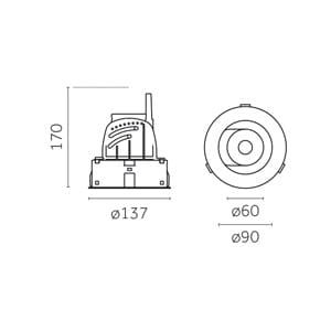 REGGIANI S.P.A. ILLU - REGX.1X.RH42B.HQ12 UNIT RECES ROUND PERFORM D60 9W TRIM FS - X.1X.RH42B.HQ12