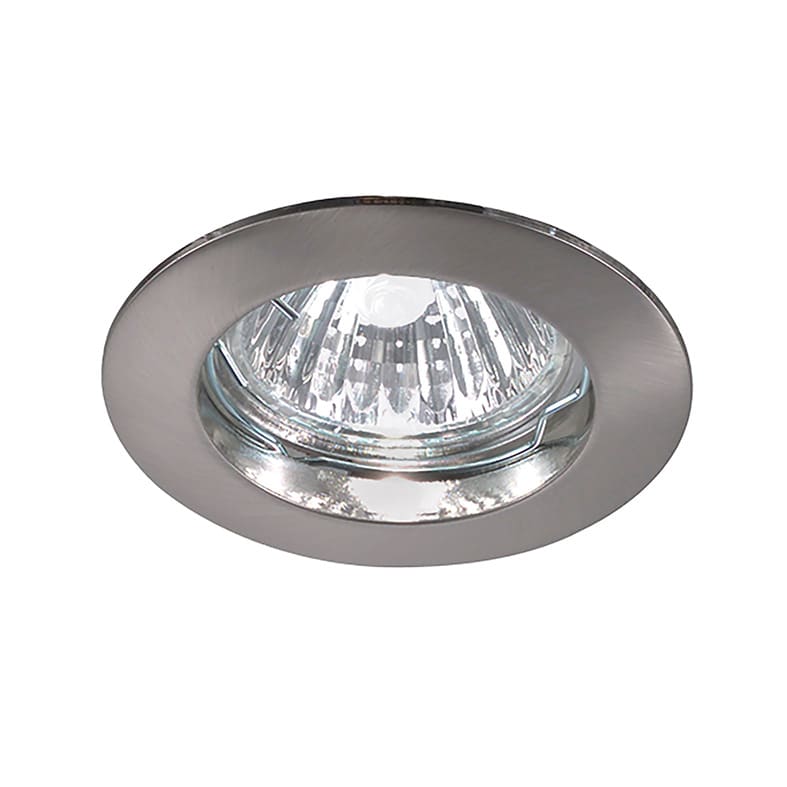 Faretto ad incasso tondo a 12V, con attacco GU5,3che consente di montare lampadina LED. Struttura in metallo, disponibile in sei finiture. Alimentatore da installare in remoto. Cassaforma per install azione in muratura da ordinare come accessorio.