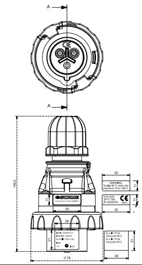 SCAME PARRE S.P.A. - SCA219.1633 SPINA MOBILE IP66 16A 2P+T 6H EX ZONA1 - 219.1633
