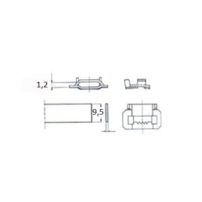 Graffe in acciaio inox AISI 304 per nastro articolo NB-3/8. L = larghezza in 3/8“ - 9.525mm, spessore 1,2mm.