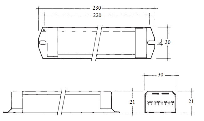Reattore elettronico per lampade fluorescenti lineari T8.