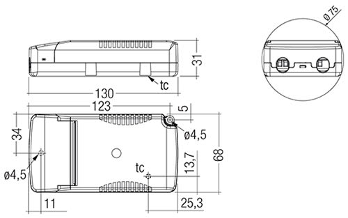 LC 35W 500mA fixC SR SNC. LED Driver, versione indipendente ad uscitta fissa. LED Driver a corrente costante. Corrente d'uscita 500 mA. Potenza d'uscita max. 35 W. Durata nominale di max. 50.000 h.Certificato KC per LC 35W 800mA fixC SR SNC. Per apparecchi illuminanti in classe d'isolamento I e II. Per apparecchi illuminanti contrassegnati da M e MM in base alla EN 60598, VDE 0710 e VDE 0711. Protezione della temperatura in base alla EN 61347-2-13 C5e. 5 anni di garanzia. Copertura: policarbonato, bianco. Tipo di protezione IP20. Protezione contro la sovratemperatura. Protezione da sovraccarichi. Protezione contro il cortocircuito. Protezione in funzionamento senza carico.