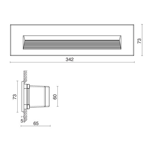 installazione: Incasso a Parete. foro incasso: Foro di incasso 355 x 85 mm. fissaggio: Molle in acciaio. corpo / struttura: Corpo in pressofusione di alluminio. verniciatura: Verniciatura in polveri di poliestere con trattamento speciale per esterni, indicata per installazioni in ambiente marino o ad alta salinità. colore: Nero. equipaggiamento: Guarnizioni in gomma siliconica. vetro / schermo: Vetro temprato chiaro. pressacavo: n.2 passacavi in gomma siliconica PG9. alimentatore: alimentatore integrato per diodi LED, uscita stabilizzata 350mA dc. tensione: 220-240V 50/60Hz. fascio luminoso: Asimmetrico. classe isolamento: Classe 2. peso: 1,250 kg. grado IP: 65. filo incandescente: 850 °C. grado IK: 7. lampada inclusa: si. tipo LED: Power LED. potenza lampada: 8.5 W. flusso lampada: 910 lm. durata nominale: 50000 ore L80 B20. temperatura di colore: 3000K. indice resa cromatica: 90. costanza cromatica: 4 SDCM.