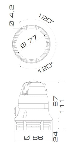 Dispositivo luminoso per applicazioni industriali a bordo macchina, versione con luce fissa/lampeggiante tecnologia a LED SMD di ultima generazione e segnalazione acustica integrata. Base in PC/ABS, cupola in policarbonato. Fissaggio tramite viteria standard non fornita.