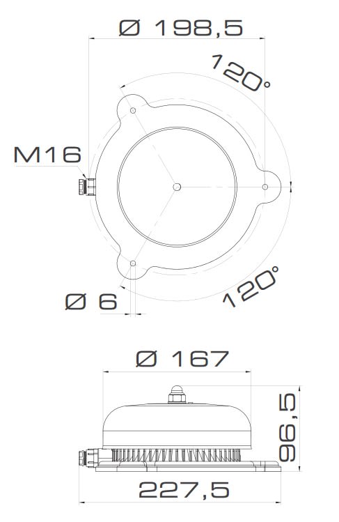 Campana elettromeccanica con base rinforzata diametro 165mm. Sviluppata con unità elettromagnetica a pistone battente, genera un caratteristico suono continuo. La robusta struttura in acciaio della campana conferisce un’elevata resistenza agli impatti e fornisce un‘alta protezione contro l’ingresso di polveri ed acqua (IP66), rendendola idonea anche per utilizzo gravoso. Campana in acciaio e flangia in poliammide. Dotata di base piana, il fissaggio avviene con viteria standard non fornita.