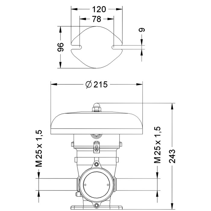 Suoneria antideflagrante per impianto in aree del Gruppo II con atmosfera esplosiva per zona 1, 2. Progettata e costruita rispettando i più alti standard qualitativi. II 2G Ex d e IIC T6 . Omologazione: CESI 10 ATEX 042 X . Corpo in lega di alluminio esente da rame. Verniciatura poliestere RAL 3020. Intensità del suono: max. 100 dB(A)1m. Protezione: IP 66. Temperatura massima superficiale: T6