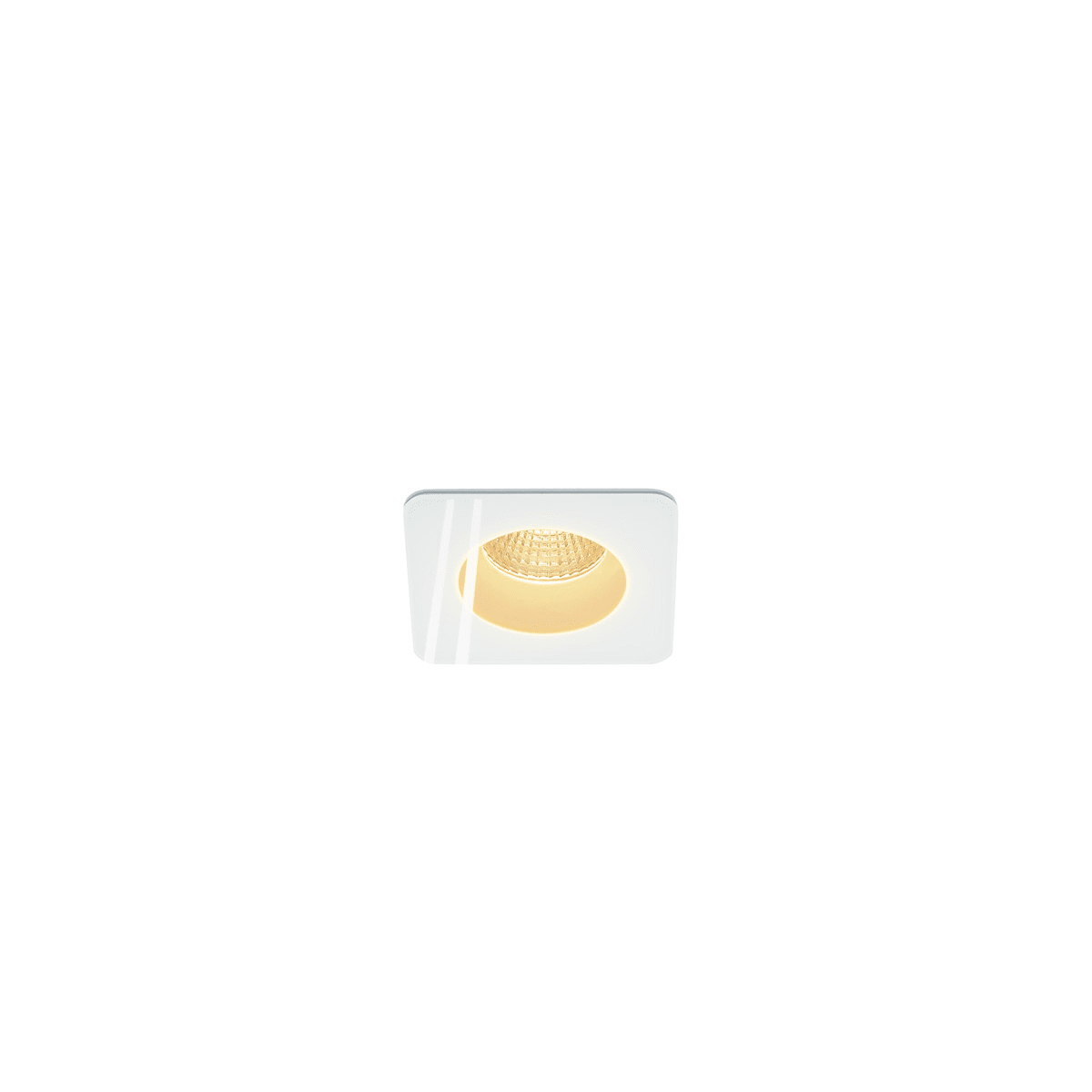 PATTA-F incasso quadro, LED,12 W 765lm 3000K, squadrato, bianco, 38°, incl. driver. L’innovativo incasso PATTA-F è adatto a soffitti con spessore fino a 20mm. Con un grado di protezione IP65 è possibile utilizzarlo sia in ambienti esterni che in ambienti umidi. Utilizzandolo in combinazione con un potente COB LED bianco caldo orientabile e con il driver LED dimmerabile in dotazione, il set è ingrado di soddisfare le esigenze dell’illuminazione di ambienti. Si collega alla rete elettrica da 230V.